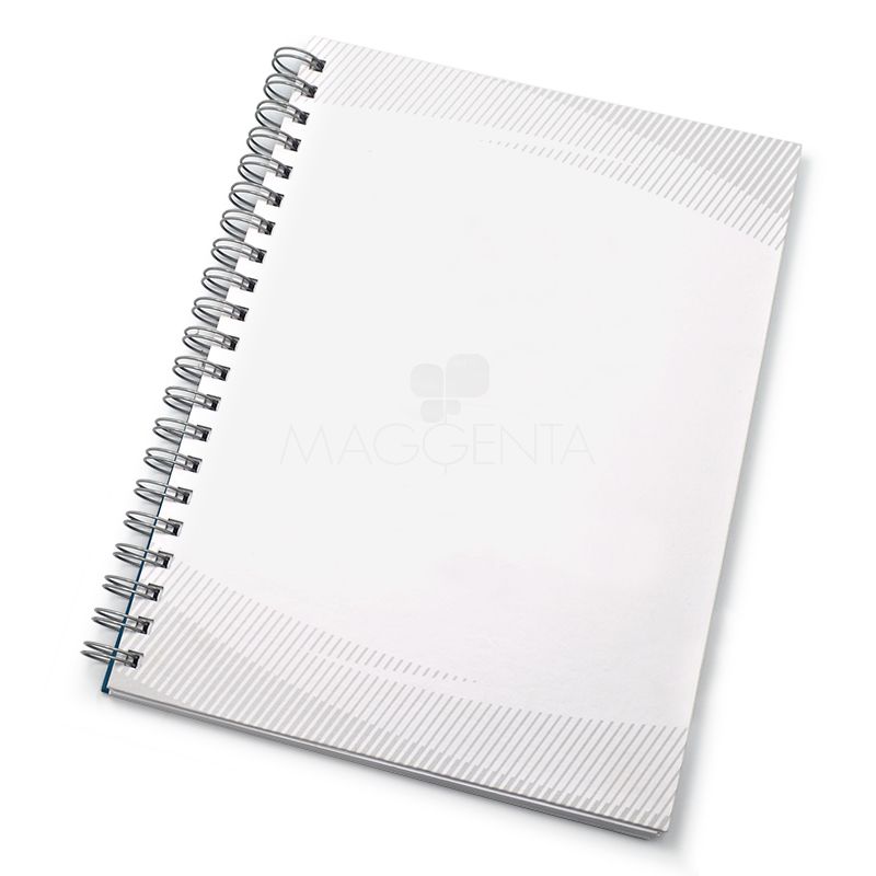 Caderno para brindes promocionais. Possui folha para dados pessoais, calendário, planejamento, marca d'agua nas folhas e capa dura com laminação fosca, disponível nos tamanhos pequeno, médio e grande. Impressão Offset com laminação fosca.