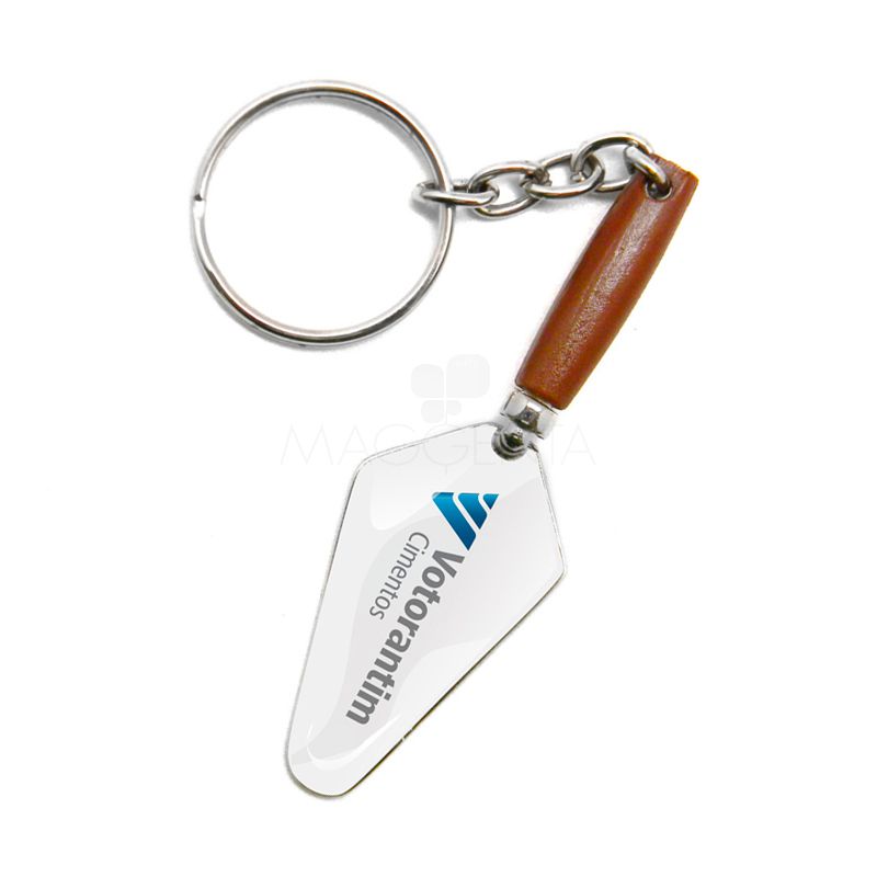 Brinde Chaveiro promocional com etiqueta resinado formato de pá