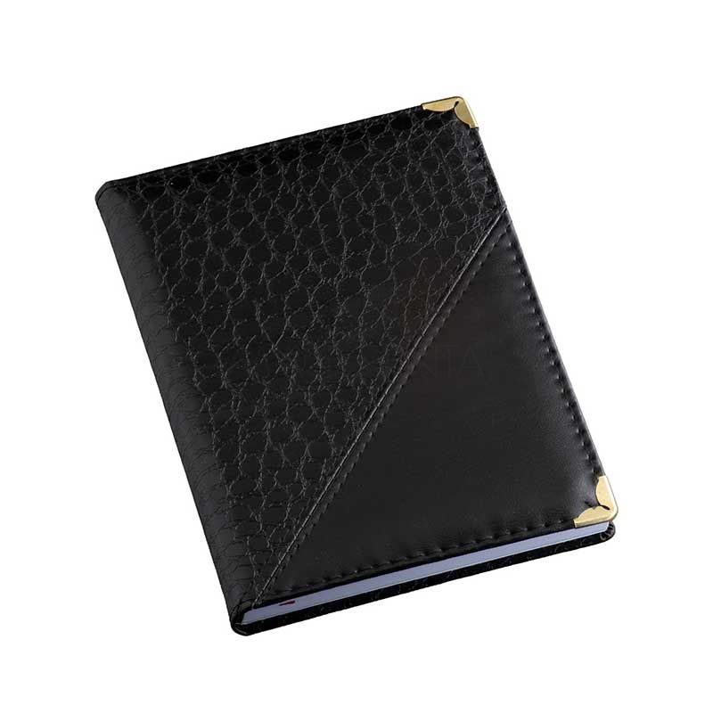 Agenda diária 2022 produzida em couro sintético preto, possui 344 páginas, índice telefônico, calendários, planeamento anual, mapa geográfico do Brasil 4x4 Cores.