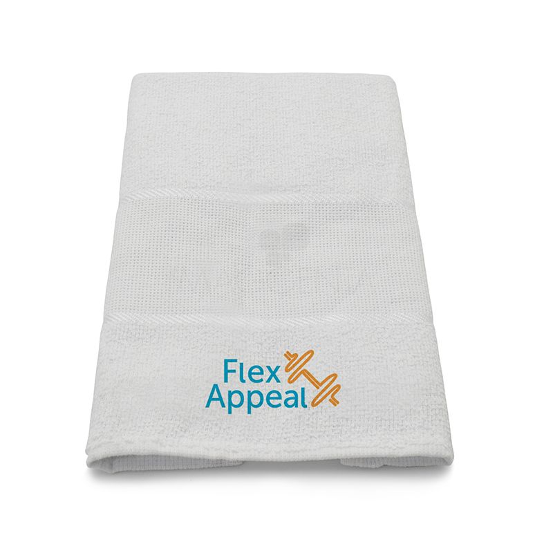 Toalha fitness confeccionada em algodão com rayon lisa para personalização. Suas atividades físicas ficarão mais práticas e agradáveis.