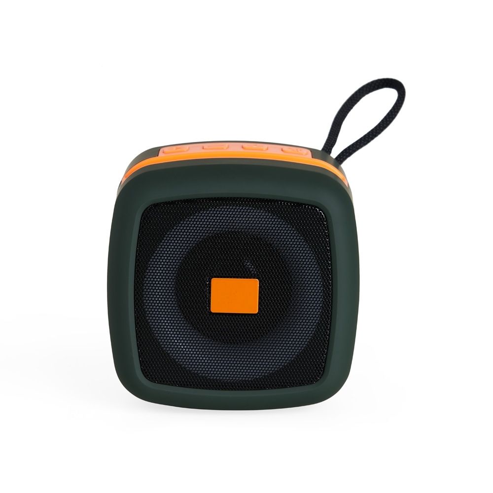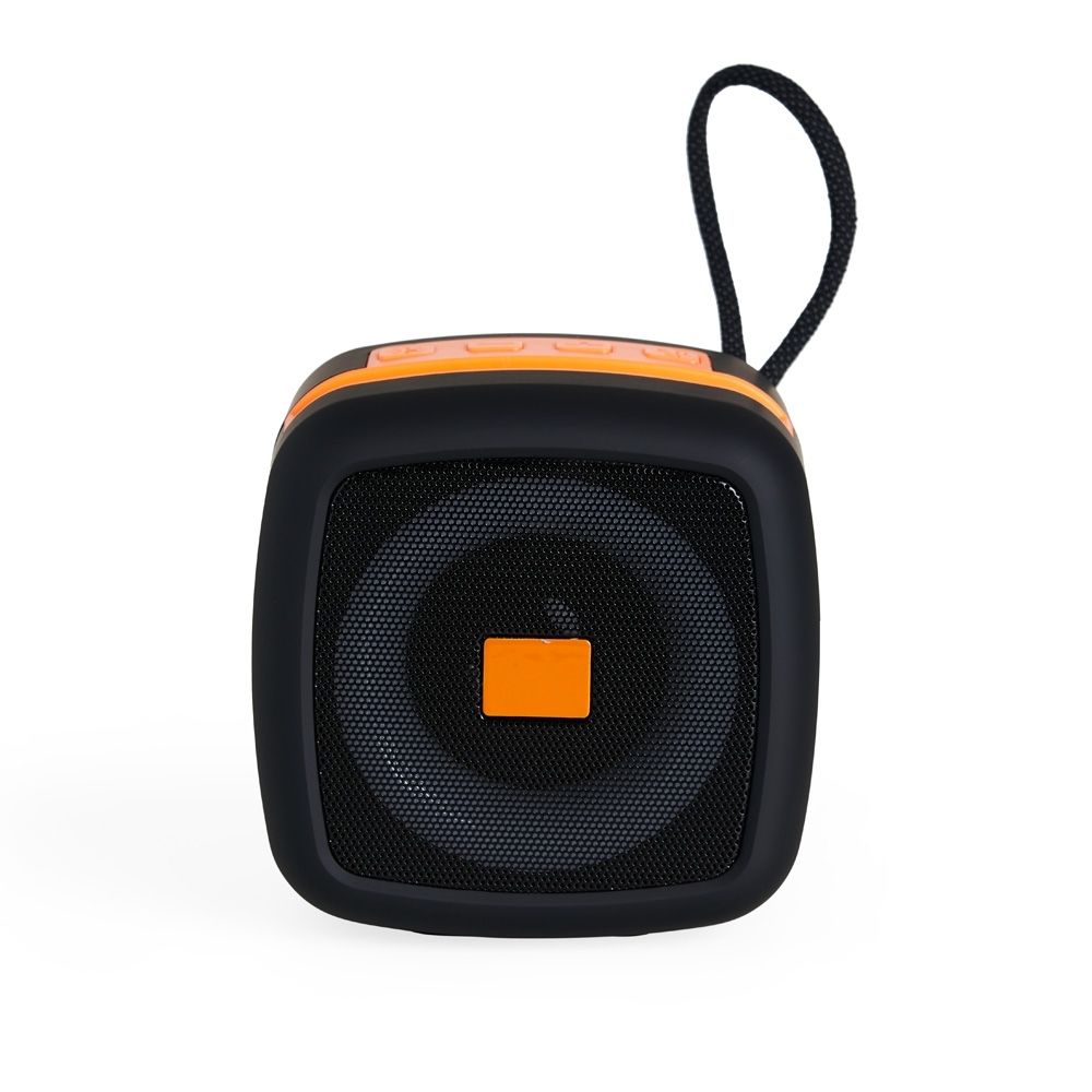 Caixa de som multimídia com conectividade TWS, luzes RGB e suporte para celular. Material plástico com base antiderrapante. Operante nos modos bluetooth, rádio FM, auxiliar P2, pen drive e cartão TF (MicroSD). A tecnologia TWS sincroniza duas caixas de som em uma só, aumentando a potência sonora. Acompanha cordão de nylon e cabo USB-V8.