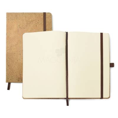 Bloco de anotações com capa dura produzido em cortiça, possui porta caneta, separador de página, elástico de fechamento e 80 folhas não pautadas na cor marfim.