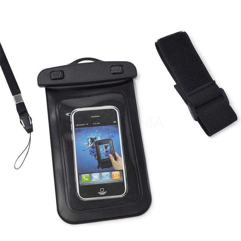 Bolsa a prova d'água para celular personalizada. É possível acomodar aparelhos com até 4.7 polegadas tipo IPhone 6, Galaxy S4... Acompanha elástico e cordão para pendurar de forma pratica. Altamente resistente para dar mais durabilidade e transparência para usar as funções do aparelho sem dificuldade. Gravação em Silk.