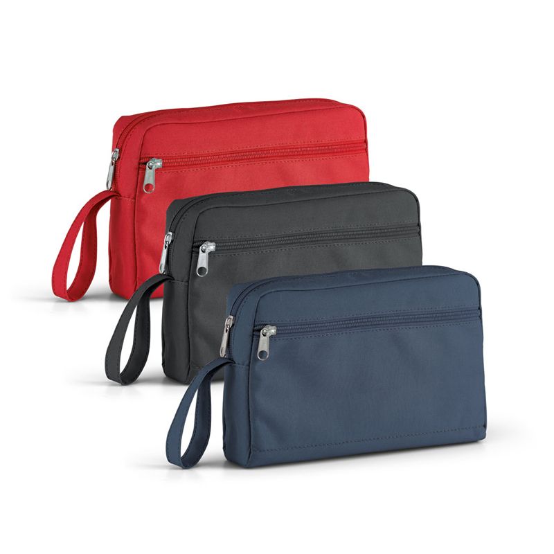 Necessaire personalizada produzida em nylon 300D com compartimento interno e bolso externo em zíper. Possui alça de mão para melhor transportá-la. ideal para guardar cosméticos e itens pessoais.