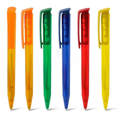esferográfica azul com acionamento no clip, escrita macia e super confortável.