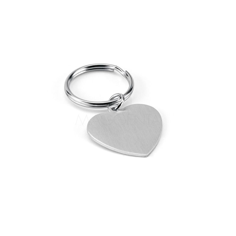 Produzido em alumínio com argola de metal no formato de coração.