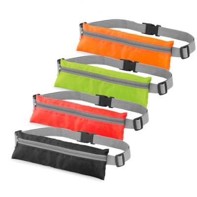 Pochete de cintura personalizada produzida em ripstop 210D, alça regulável, trava de segurança e saída para fone de ouvido.