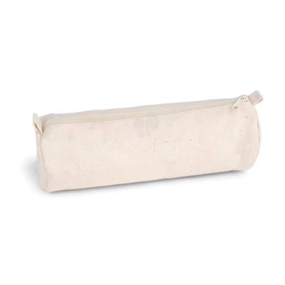 Estojo para lápis, produzido em algodão, possui zíper na parte superior para fechamento com puxador em metal. Ideal para brindes promocionais e eventos corporativos.