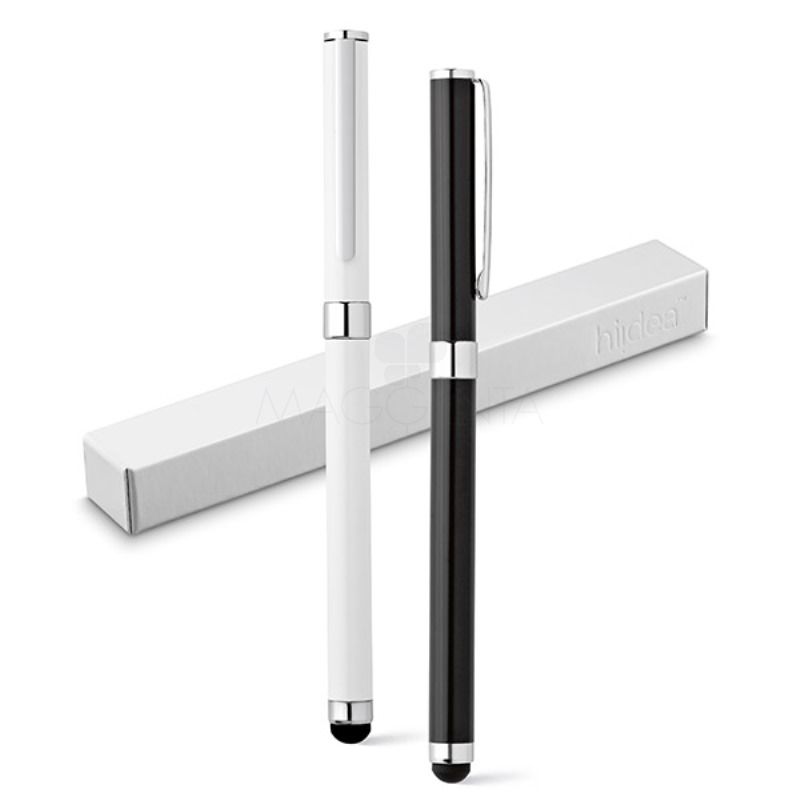 Caneta roller de metal personalizada com escrita macia e confortável, possui ponteira touch para uso em tablets e smartphone. Acompanha embalagem.