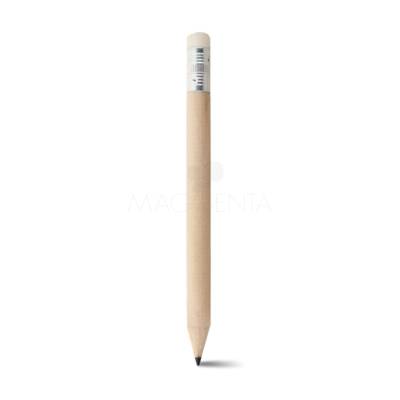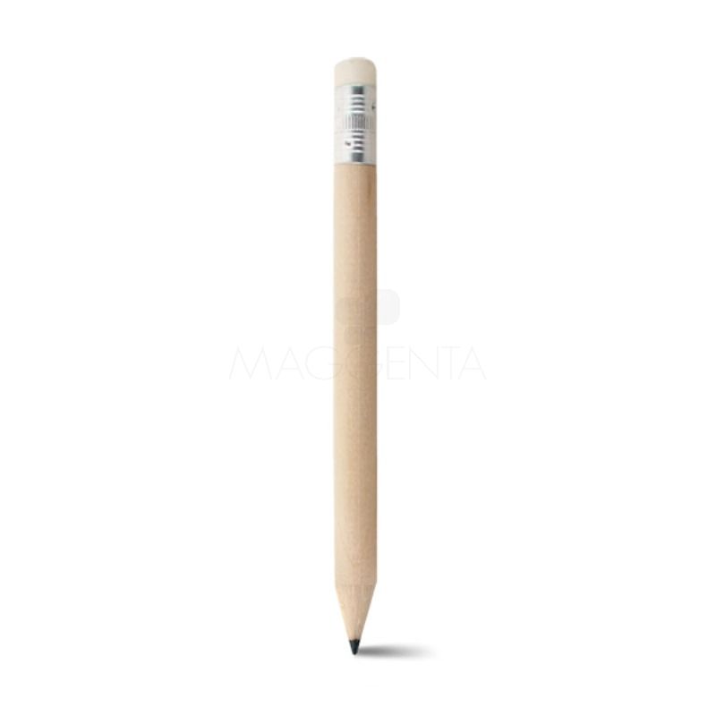 Mini lápis personalizado com borracha branca e detalhe de metal. Ideal para brindes promocionais e eventos corporativos.