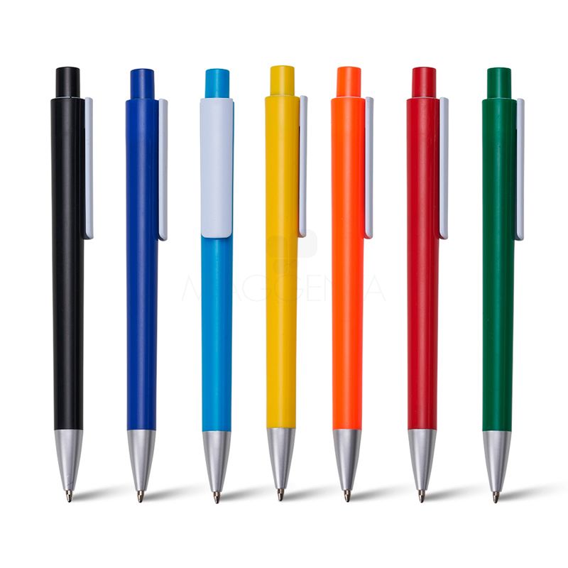 Caneta Plástica Personalizada Caneta plástica personalizada com clip personalizado em um design moderno e inovador, possui esferográfica azul e acionamento da ponteira por click.