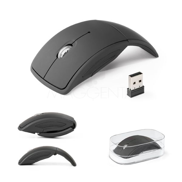 Mouse Wireless 2.4G Dobrável Personalizado Mouse wireless dobrável 2.4G dobrável produzido em ABS com acabamento emborrachado. Ideal para brindes promocionais e eventos corporativos. Acompanha 2 pilhas AAA e embalagem transparente.