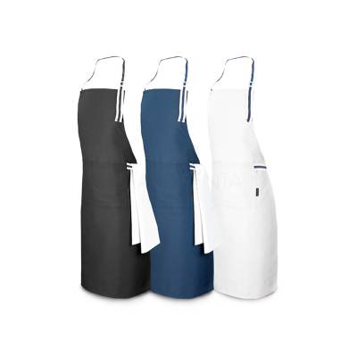 Avental gastronômico personalizado produzido em algodão e poliéster 150 g/m² com alça ajustáveis, possui dois bolsos frontais de 17 x 18 cm cada. Ideal para brindes promocionais e eventos corporativos com foco em gastronomia.
