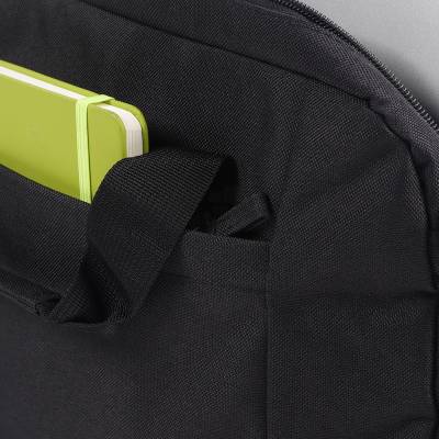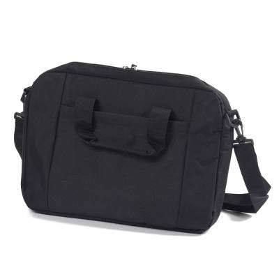 Pasta para notebook personalizada produzida em tecido poliéster, designer executiva. Possui interior forrado, compartimento interno para notebook até 15,6", um bolso lateral e alça ajustável de ombro e alça de mão reforçada.