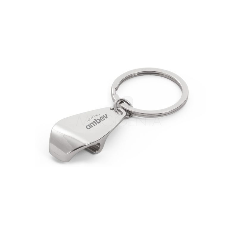 Chaveiro abridor personalizado produzido em metal com acabamento brilhoso, Possui abridor de garrafas e argola para adicionar suas chaves e facilitar seu dia a dia. Ideal para divulgar sua empresa em eventos corporativos, brindes personalizados e campanhas promocionais.