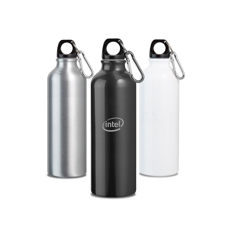 Squeeze garrafa de alumínio personalizado com capacidade para 750ml, possui tampa rosqueável e mosquetão para transporte. Ideal para divulgar sua empresa em eventos corporativos, brindes personalizados e campanhas promocionais.