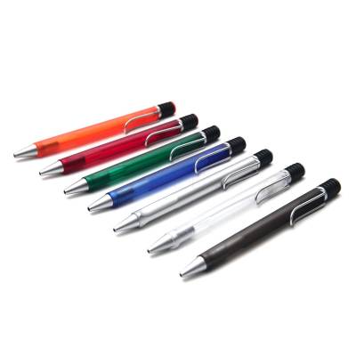 Brinde Caneta de Plástico com click injetada detalhe no corpo em várias cores e clip metalizado . Consultar as cores