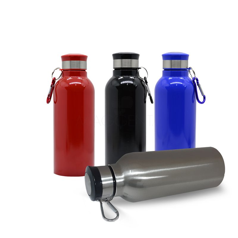 Squeeze garrafa de metal personalizada com acabamento fosco, tampa rosqueável com anel de vedação e mosquetão para transporte. Produzido em inox com acabamento escovado na cor prata e capacidade para 700ml. Ideal para divulgar sua empresa em eventos corporativos, brindes personalizados e campanhas promocionais.