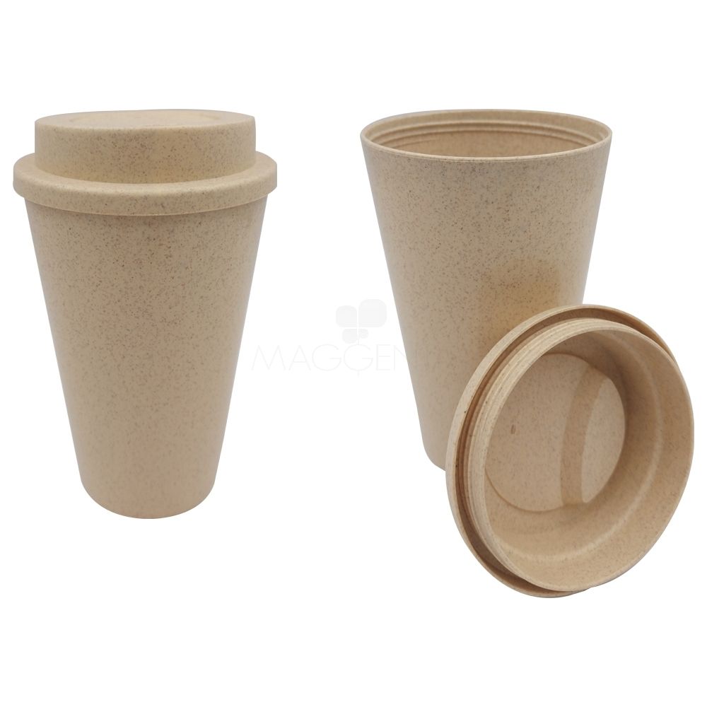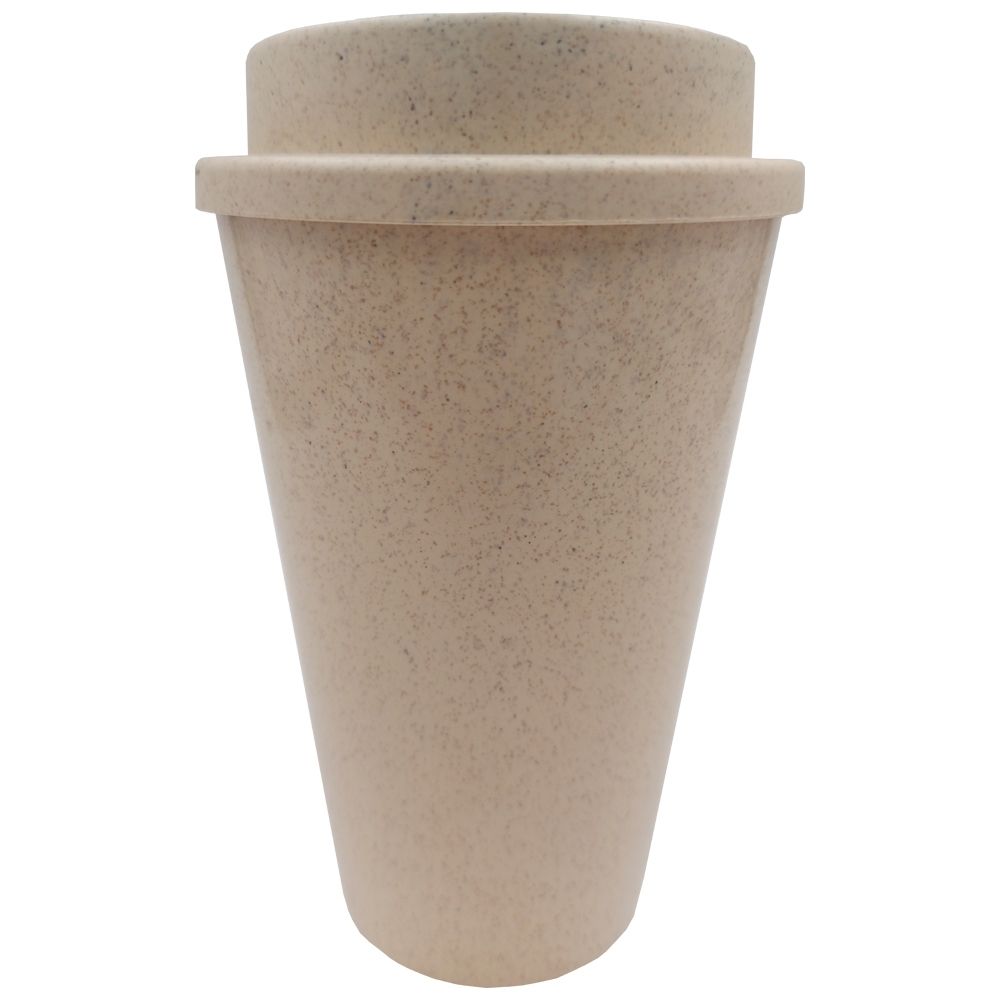 Copo de plástico com fibra de trigo. Possui capacidade para 450ml e tampa rosqueavel com orifício para saída da bebida. Ideal para divulgar sua empresa em eventos corporativos, brindes personalizados e campanhas com apelo sustentável ao meio ambiente.