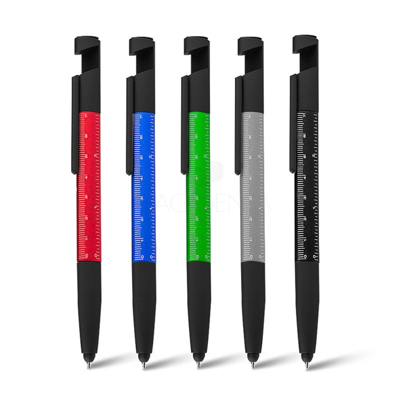 Caneta de metal com ponteira touch, porta smartphone e régua de 7cm, possui esferografica azul com acionamento giratorio, suporte para smartphone, compartimento para dois tipos de ferramenta (chave allen e chave fenda), limpador de tela e regua de 7 cm no corpo da caneta. Ideal para brindes promocionais e eventos corporativos. *Smartphone não acompanha o produto.