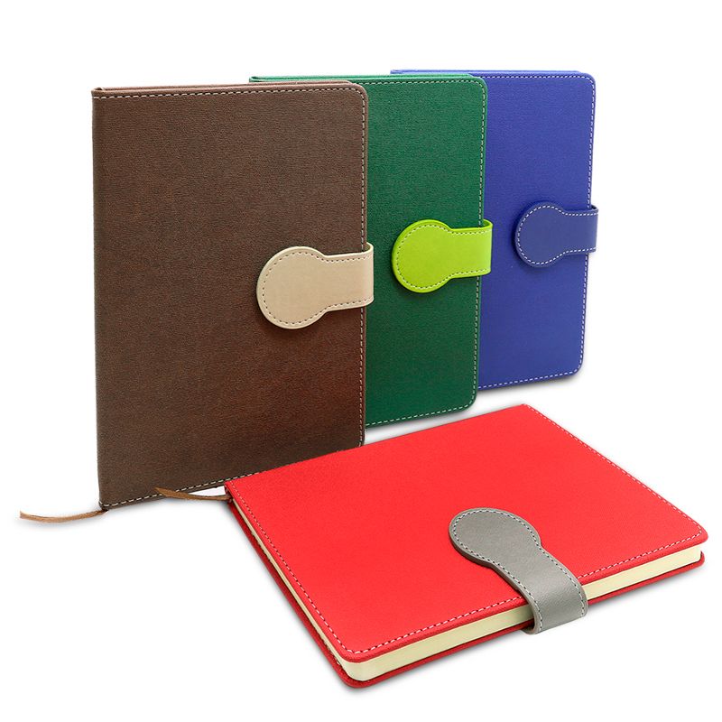 Bloco para anotações personalizado com capa dura em acabamento de tecido sintético texturizado. possui fecho magnético revestido de couro sintético e marca páginas de cetim. Bloco com aproximadamente 96 folhas não pautadas na cor amarela. Ideal para brindes, campanhas promocionais e eventos corporativos.