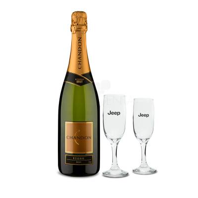Kit Chandon BRUT 750 ml com duas taças personalizadas de vidro com capacidade para 180 ml. Possui embalagem elegante com 1 Chandon BRUT 750 ml, teor Alcoólico: 11,8% com paladar frutado, mostra notas florais, e delicado aroma de pão fresco. A elegância garantida pelo frescor e a perlage fina envolvem a boca e associam-se às notas de frutas cítricas e secas, e duas taças de vidro com haste curta e bojo reforçado. Brinde ideal para ser desfrutado em encontros, baladas e ocasiões informais.