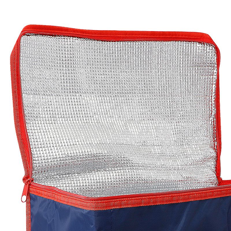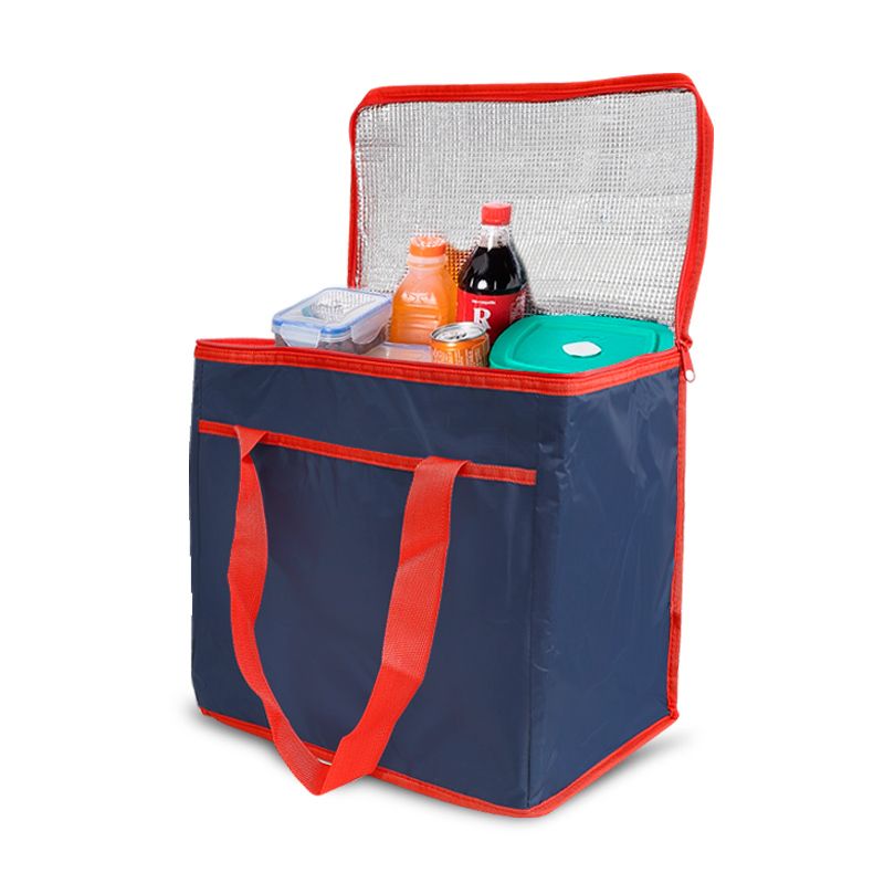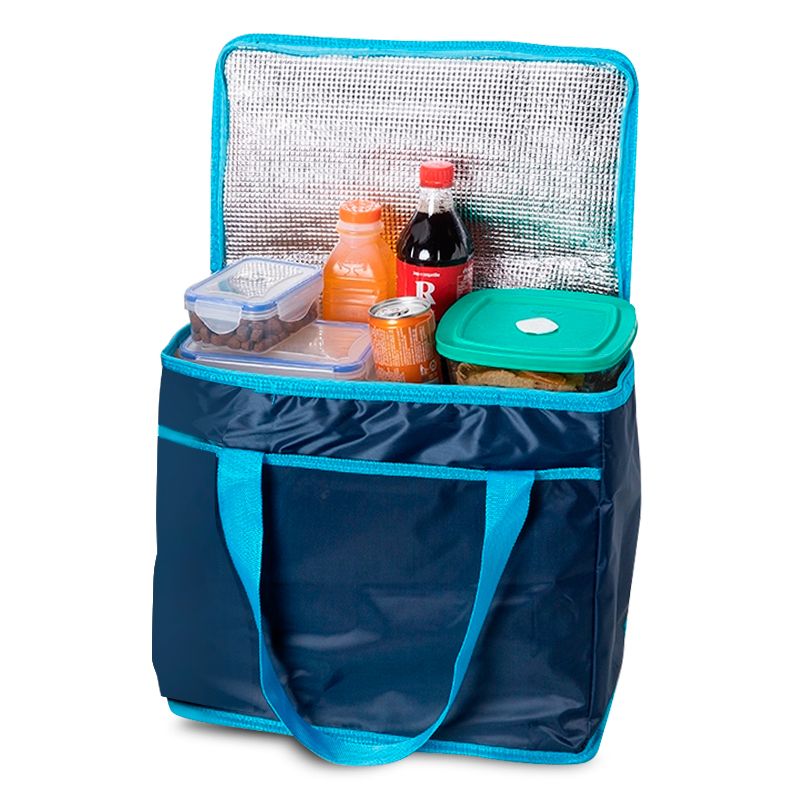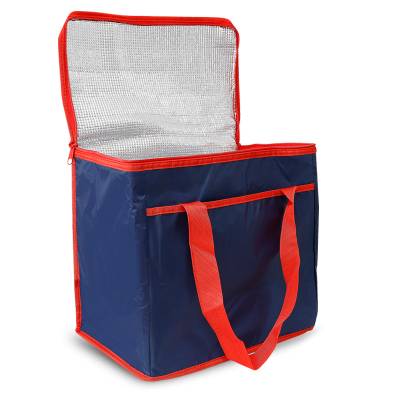 Bolsa térmica personalizada produzida em poliéster 420D com capacidade de 36 litros. Possui área interna com revestimento térmico ideal para manter / conservar a temperatura dos alimentos e bebidas por mais tempo, bolso frontal externo, tampa com fechamento por zíper duplo e alças de mãos para transporte. Ideal para brindes promocionais e eventos corporativos. Imagem ilustrativa.