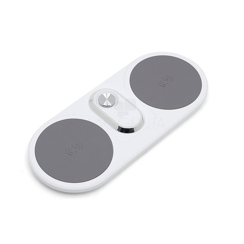 Carregador wireless personalizado produzido em ABS com design fino e inovador. Possui sistema de carregamento sem fio wireless para smartphones com tecnologia de WPC Qi1.2 compatível com Apple Watch relógio Qi com carregamento sem fio. Carga rápida Apple 7.5W e Samsung 10W, conecte os carregadores QC2.0 e QC3.0 com protocolo padrão QC. O telefone de carga não rápida funciona no modo QI 5W no terminal de carregamento sem fio lateral do relógio e suporta apenas o carregador sem fio iWatch de três e duas gerações de relógios com potência padrão de 2W. Compatível com smartphones Apple, iPhoneX / IPhone8 Plus / iPhone8, Samsung: Note8 / S8 Plus / S8 / S7 Edge e Qualquer um dos telefones com protocolo Qi para Apple watch Watch3 e IWatch 2. Imagem Ilustrativa. Ideal para brindes promocionais e eventos corporativos.