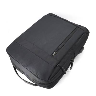 Mochila para notebook personalizada produzida em nylon com compartimento para notebook até 15,6 polegadas. Possui compartimento interno 18L com divisórias para documentos, eletrônicos e caneta, dois compartimentos frontais com abertura vertical, bolso lateral e adaptador USB externo com cabo acoplado, permitindo a conexão de um carregador portátil de dentro da mochila e transferência da carga para o lado externo, ocultando o carregador e viabilizando a utilização do celular durante o processo. Contém zíperes com pegadores plásticos, alça de mão em nylon e alças para as costas ajustáveis com revestimento espumado antitranspirante. Ideal para brindes promocionais e eventos corporativos. Power Bank não acompanha o produto. Obs: Para a entrada lateral USB funcionar como carregador, é necessário a aquisição de um de nossos Power Banks. * Imagem ilustrativa.