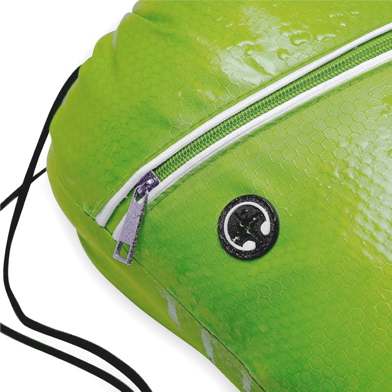 Mochila saco personalizada produzida em fibra de poliéster resistente à água. Contém bolso diagonal na parte frontal com entrada para fones de ouvido e alças de nylon. Ideal para brindes promocionais e eventos corporativos. Obs: Fone de ouvido não acompanha o produto.