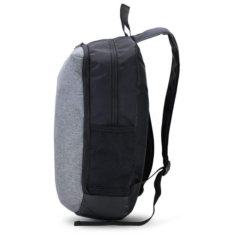 Mochila personalizada produzida em Nylon Firenza Uly siliconado. Possui compartimento principal para notebook de até 15.7, amplo espaço interno, zíperes de metal, bolso secundário frontal para separação de itens e objetos pessoais ou documentos, costas reforçada em Nylon 210 proporcionando um maior conforto e durabilidade, alça de mão, alças de ombro ajustáveis, pequeno bolso frontal e bolsos laterais com telinha em nylon. Ideal para brindes promocionais e eventos corporativos.