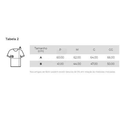 Camiseta feminina produzida em malha jersey 100% algodão (150 g/m²). Peça cortada e cosida com costura dupla nas. Tamanhos: P (A60 x B41cm), M (A62 x B44cm), G (64 x 47cm), GG (A66 x B50cm). Personalização em transfer. Obs: Nos artigos de têxtil podem existir desvios de 5% em relação às medidas indicadas.