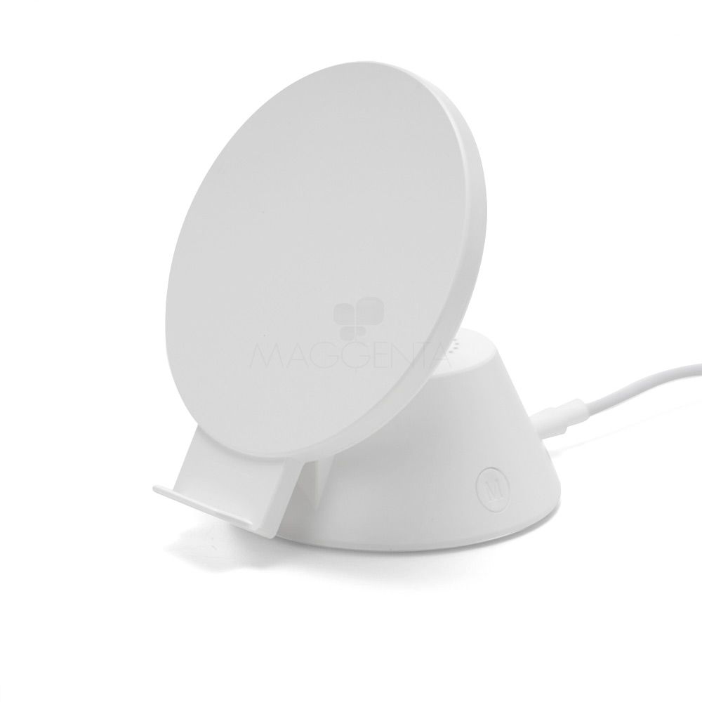 Caixinha de Som bluetooth com carregador wireless. Produzido em material plástico, a caixinha possui antiderrapantes emborrachados na parte inferior, ao ser inclinado o produto também pode ser utilizado como suporte para o celular. Para desfrutar do carregamento por indução (sem fio) é fundamental que o celular possua a tecnologia QI – desta maneira é possível carregar o celular posicionando-o sob carregador, sendo necessário apenas conectar o carregador à uma fonte de energia (USB ou diretamente na tomada). Acompanha cabo USB Tipo-C. Ideal para brindes promocionais e eventos corporativos.