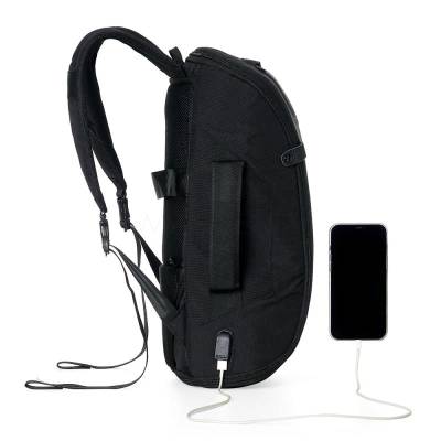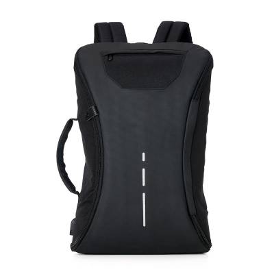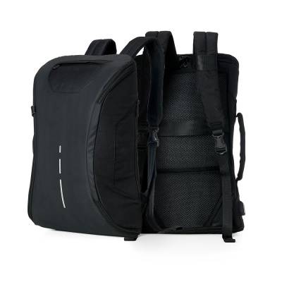 Mochila para notebook personalizada produzida em tecido poliéster. Possui parte externa: 1 Bolso frontal com ziper; Alça de mão e ombro acolchoadas; Alça lateral; Conector USB na lateral. Parte interna: Compartimento para notebook; de até 17 polegadas, Porta Tablet; Porta Caneta e 3 Divisórias interna. Ideal para brindes promocionais e eventos corporativos. Imagem ilustrativa. Obs: Compatível com tamanho de notebook máximo de 40 x 28 Cm.