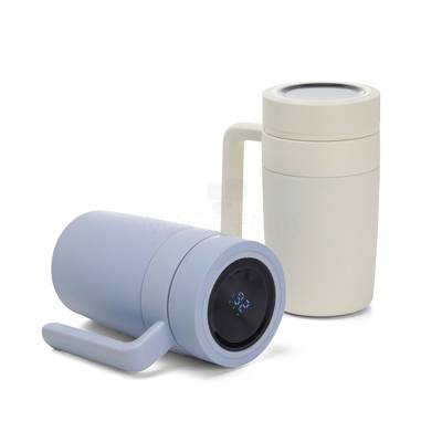 Caneca térmica personalizada em inox com pintura personalizada e capacidade para 500ml. Possui infusor de chá em metal, tampa rosqueável com anel vedante e display em LED com termômetro digital na tampa para indicar a temperatura do líquido. Ideal para brindes promocionais e eventos corporativos.