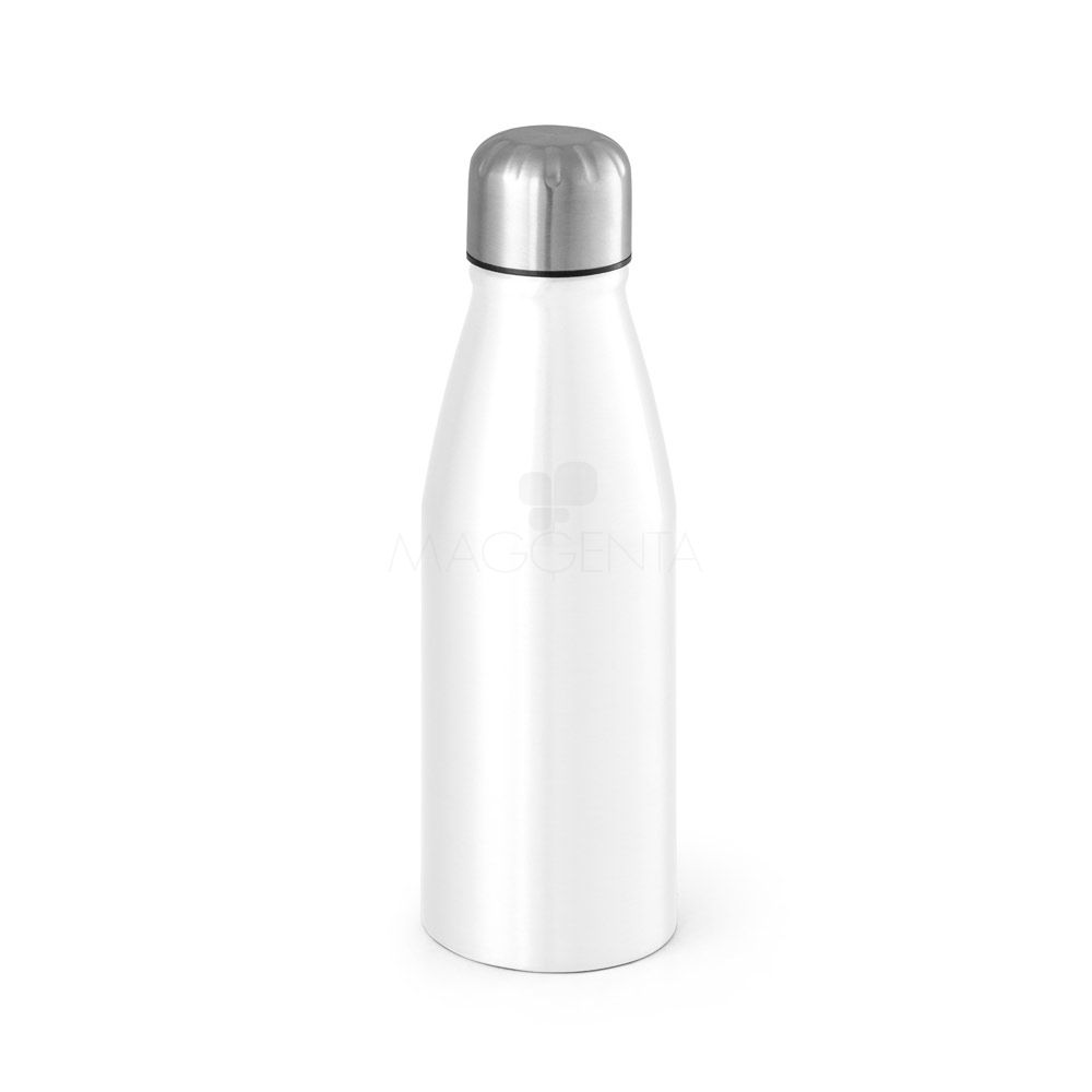 Squeeze de metal personalizado com tampa rosqueável em aço inox e capacidade para até 500ml. Ideal para brindes promocionais e eventos corporativos.