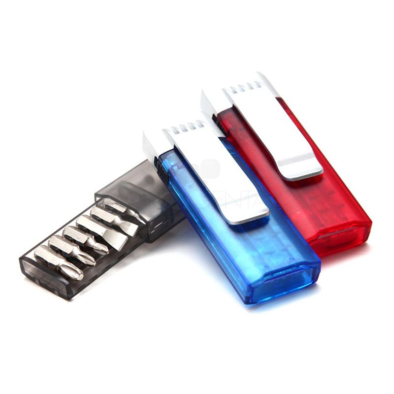 Kit ferramenta personalizado com 6 peças e lanterna. Acompanha bateria.