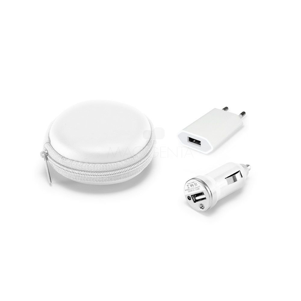 Kit portátil com estojo em E.V.A rígido com 1 Adaptador veicular e 1 Adaptador para tomada com saída USB de corrente DC 110V/220V e adaptador para carro DV 12-24V. Fornecido com bolsa EVA.