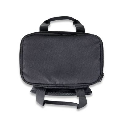 Bolsa Térmica Ecológica fabricada com tecido Poliéster RPET 300D, totalmente reciclado. A bolsa foi produzida com 11 garrafas modelo PET grandes e durante a preparação do tecido, foram economizados 7 litros de água para cada unidade. Bolso frontal e alças para carregar. Capacidade interna de 6 litros.