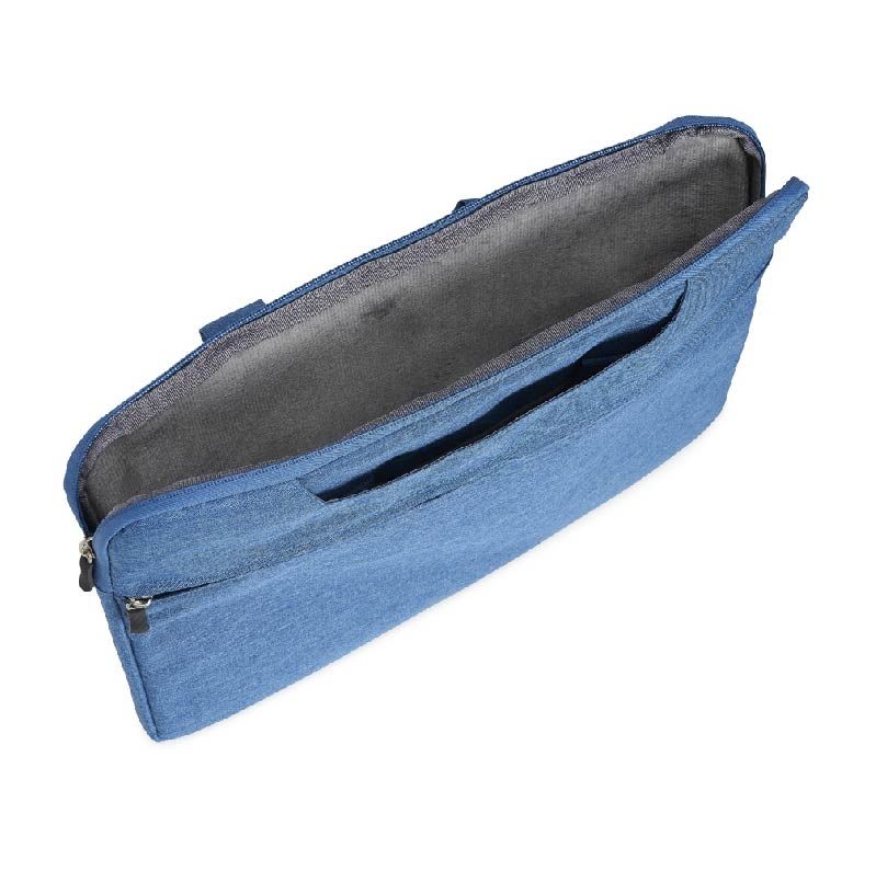 Pasta para notebook 15’6 em poliéster resistente à água com dois compartimentos, sendo o principal para notebook e o outro frontal. Contém interior forrado e almofadado, alça para encaixe em malas de viagem e acompanha alça transversal.