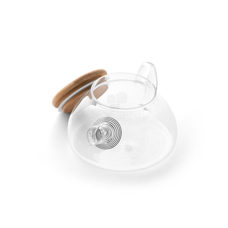 Bule de vidro borosilicato com tampa em bambu. Inclui infusor em aço inox. Capacidade até 750ml. Fornecido em caixa presente de papel craft.