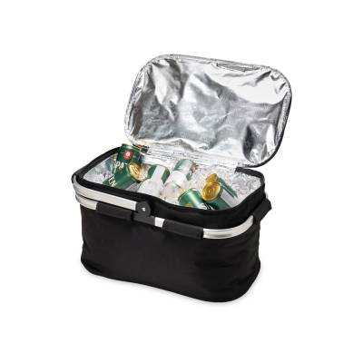 Bolsa térmica personalizada com capacidade de 33 litros, com material poliéster e revestimento térmico com costura soldada, impossibilitando que vaze. Contém armação de transporte removível em alumínio com pegador emborrachado. Brinde ideal para campanhas promocionais.