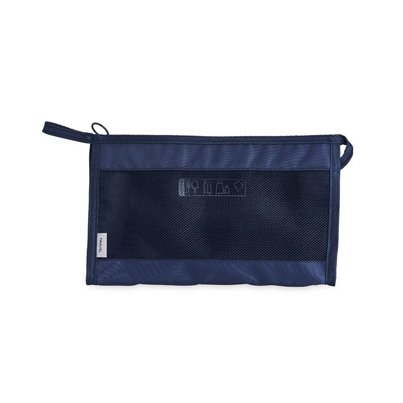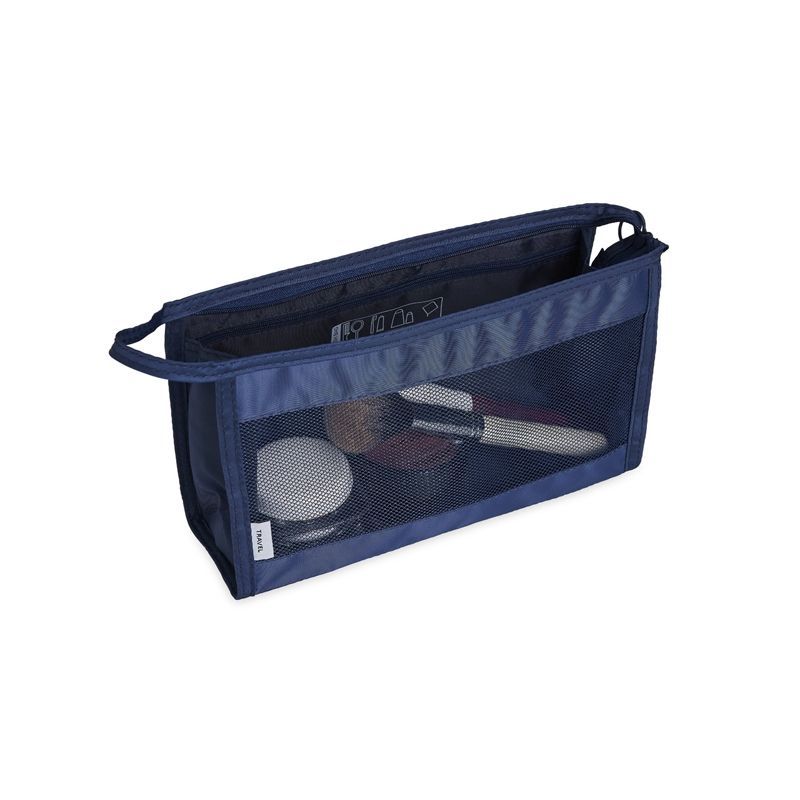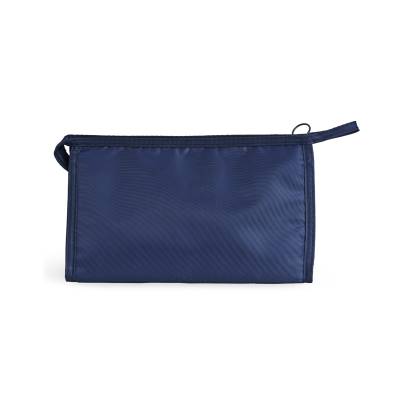Nécessaire respirável de poliéster com pequeno bolso resistente à água. Ideal para brindes personalizados, feiras de cosméticos e eventos corporativos. Objetos decorativos não acompanham o produto.