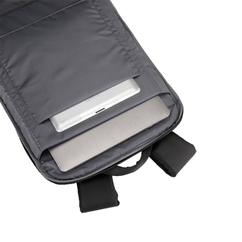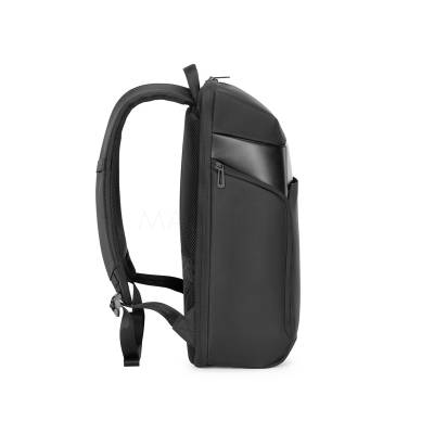 Mochila personalizada, adequada para viagens de negócios, feito de tecido de poliéster, alças de ombro acolchoadas, aceita notebook de até 15,6”, porta USB na lateral, engate para mala de viagem, com dois bolsos nas laterais.