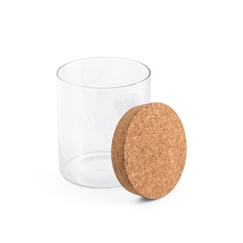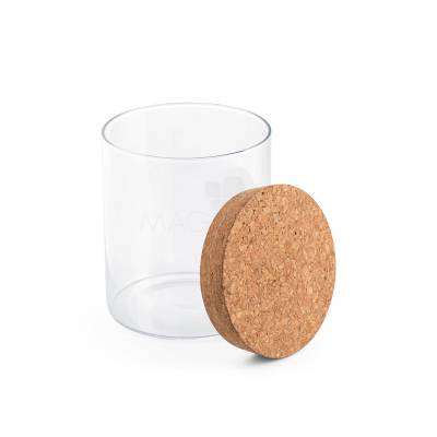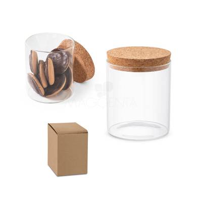 Frasco em vidro borosilicato e tampa de cortiça. Capacidade até 700ml. Fornecido em caixa presente de papel craft. Ideal para sua campanha de endomarketing ou premiação de colaboradores.