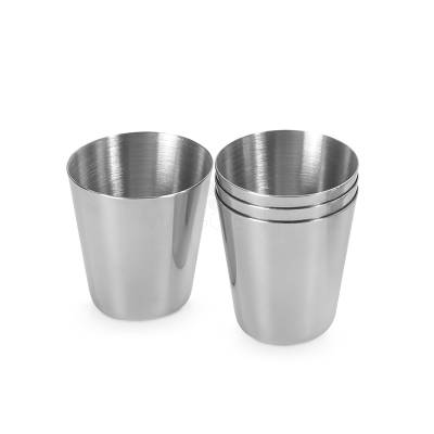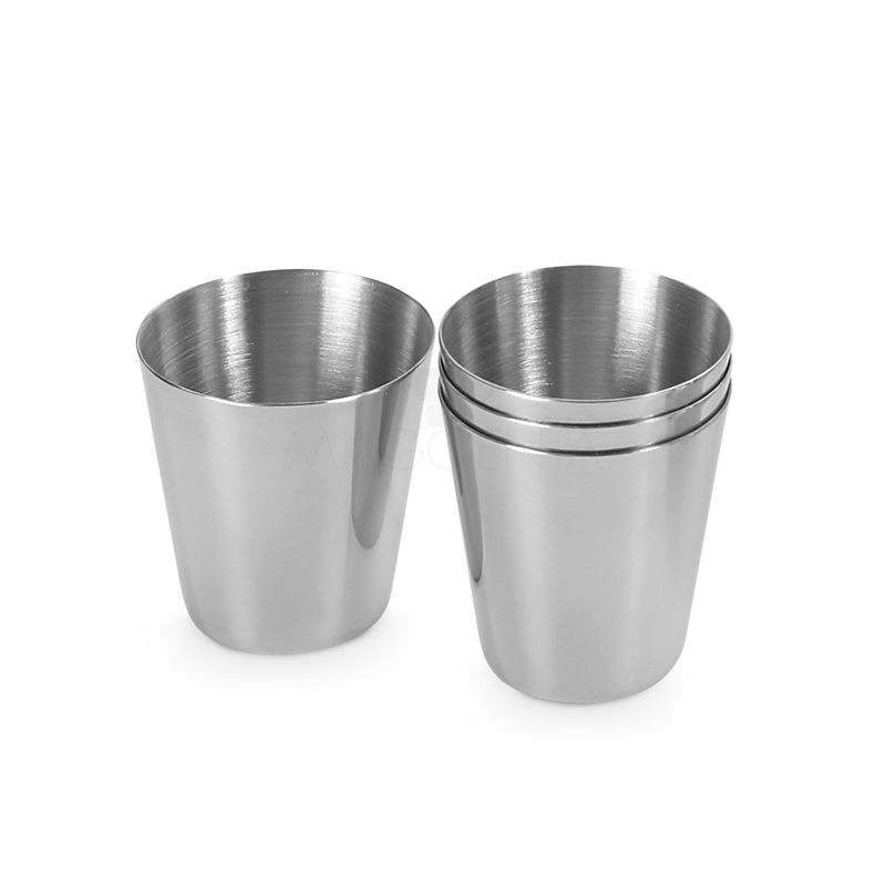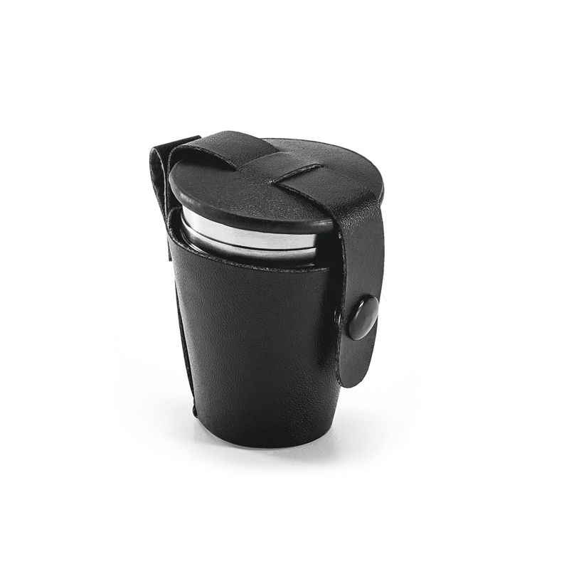 Conjunto de 4 copos personalizado em aço inox. Possui uma bolsa para transporte em imitação de pele e com capacidade de até 25 ml. Ideal para divulgar sua empresa em eventos corporativos, brindes personalizados e campanhas promocionais.