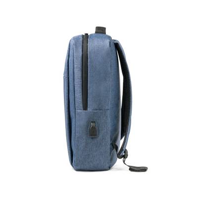 Mochila para notebook em 300D personalizada, possui um compartimento principal com bolso forrado para computador até 15,6" e diversos bolsos interiores. Contém ainda bolso frontal, bolso lateral e entrada USB. Parte posterior e alças são almofadadas.