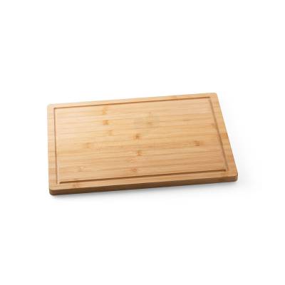 Tábua de corte em bambu personalizada com sulcos nas extremidades. Ideal para diversos petiscos, queijos, salames, azeitonas, palmitos e demais delícias de tira gosto, desde os legumes até o corte de carnes do seu churrasco. Durável e higiênica, o bambu é um material resistente e com propriedades que evitam a proliferação de bactérias. Imagem Ilustrativa.