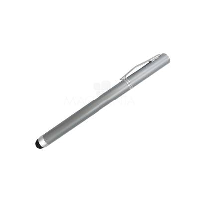 Caneta roller de metal personalizada com escrita macia e confortável, possui ponteira touch para uso em tablets e smartphone, carga na cor azul. Ideal para brindes promocionais e eventos corporativos.