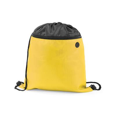 Mochila saco personalizada produzida em nylon 210 com alças de algodão, possui bolso frontal e saída para o fone de ouvido. Ideal para eventos esportivos, brindes promocionais e eventos corporativos.